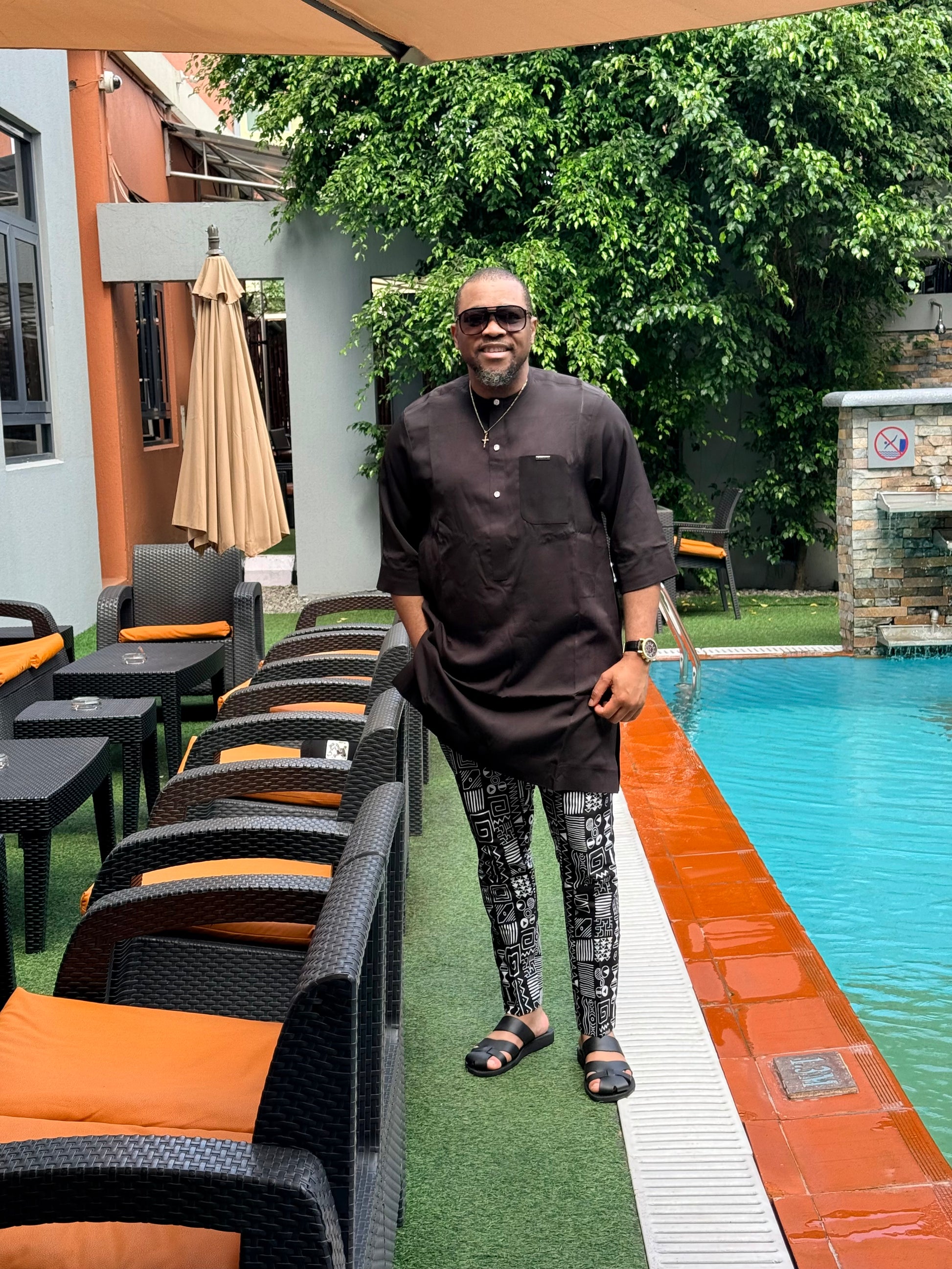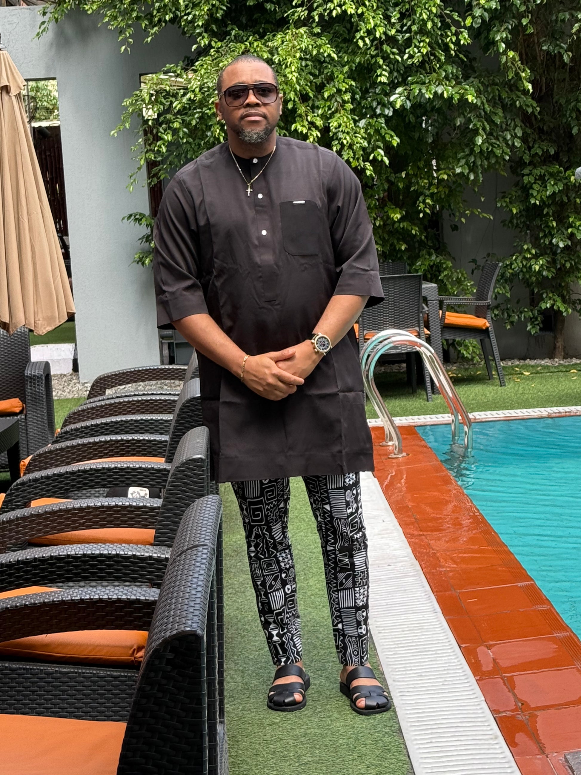 The Pant: The tailored black-and-white Ankara pants showcase intricate geometric patterns, delivering visual depth and cultural flair. Designed with a slim, modern fit, they can also be styled separately with a crisp white shirt, casual tee, or blazer for a creative smart-casual look.